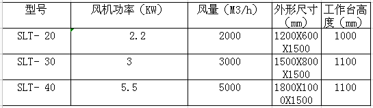SLT系列集塵工作臺 該工作臺可以從源頭上捕集生產(chǎn)過程中產(chǎn)生的打磨粉塵,焊接以及等離子切割的煙霧。集塵工作臺配有粉塵過濾裝置、電氣控制系統(tǒng)并可選配動力裝置,可使工件進行水平或垂直方向的回轉(zhuǎn),以提高勞動效率,并可為客戶要求提供專業(yè)的集塵工作平臺?,F(xiàn)廣泛應(yīng)用于焊接、打磨和等離子切割,也可去毛刺,非金屬和金屬工件表面拋光、磨光。 SLT粉塵過濾裝置自帶式工作臺的特點是放置隨意,維修方便,生產(chǎn)工藝可進行柔性編排。 SLT工作臺粉塵通過風(fēng)機產(chǎn)生的負(fù)壓經(jīng)正面排風(fēng)口和下排風(fēng)口進入凈化器,氣流進入導(dǎo)流通道,大顆粒粉塵與導(dǎo)流板碰撞后,大顆粒粉塵在重力的作用下落入集灰抽屜,含細(xì)小顆粒的粉塵進入過濾室,含塵氣體由濾袋外表面穿過濾芯,粉塵則被濾芯阻攔在其表面,當(dāng)被阻攔的粉塵在濾芯表面不斷沉積時,通過手動清灰機結(jié)構(gòu)清掃濾芯,也可通過脈沖噴吹對濾筒清灰使得沉積在濾芯上的粉塵顆粒在振動的作用下脫離濾芯表面落入集灰抽屜中,使得整個濾芯表面都得到清掃,凈化后的潔凈空氣由風(fēng)道、經(jīng)風(fēng)機排出。獨特的臺式設(shè)計,并配有工作燈、打磨機電源插孔、夾具安裝孔,兩側(cè)板可隨時打開,方便較大工件使用。